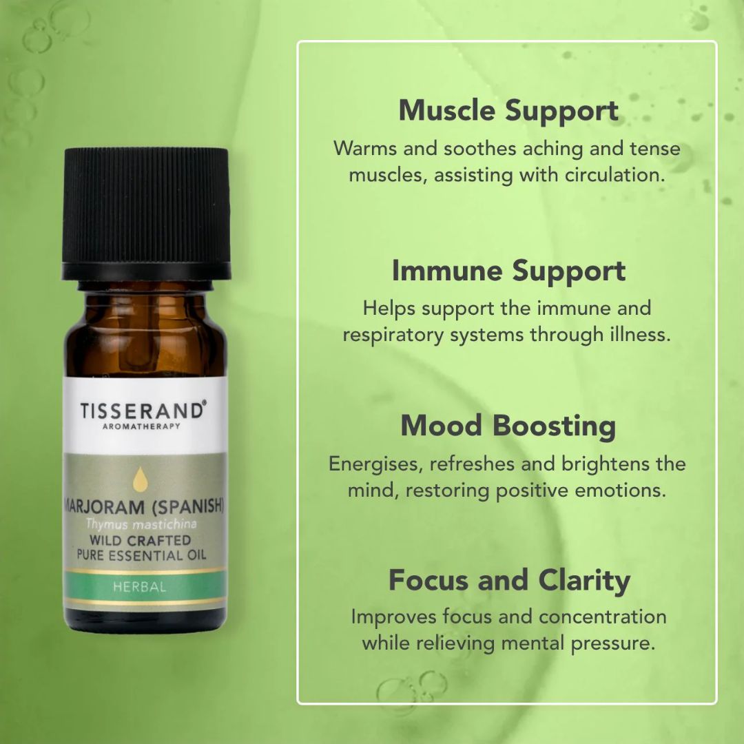 Espanjalaisen meiramin öljyllä on terävä, yrttinen tuoksu mausteisilla vivahteilla, joka voi olla virkistävä ja energisoiva. Käytä öljyä diffuusorissa levittääksesi sen raikasta tuoksua kotiisi tai työtilaan. "Journal of Alternative and Complementary Medicine" -julkaisussa esitetyn tutkimuksen mukaan eteerisillä öljyillä voi olla positiivinen vaikutus mielialaan ja energiatasoihin.